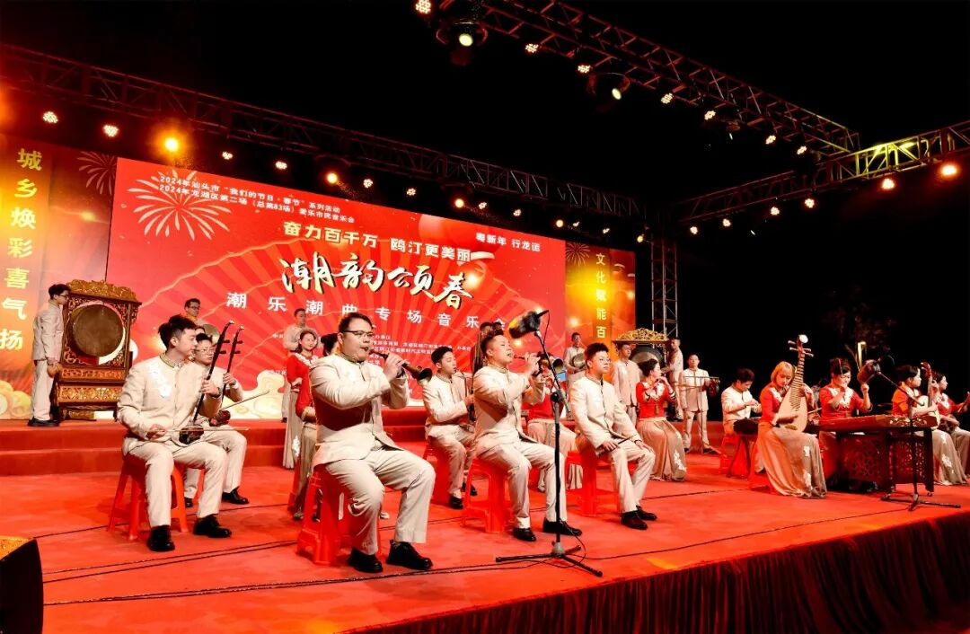 2月7日晚,龙湖区爱乐市民音乐会特邀汕头潮乐团走进鸥汀街道蔡社社区,与鸥汀街道的父老乡亲以及网络直播平台的朋友们共贺新春佳节。 本场音乐会上演多首潮乐经典曲目,荣获第十五届广东省艺术节小型节目金奖的潮曲表演唱《烽火侨批》也登上舞台,还有曾代表汕头市参加广东省第十四届“百歌颂中华”歌咏活动荣获金奖的优秀歌手林少佳加盟,晚会精彩纷呈,为当地群众奉上一道兼具艺术性和欣赏性的“文化”大餐,也奏响了新一年的迎春曲。 据悉,汕头潮乐团成立于1958年,是广东省粤东地区唯一国办潮州音乐演奏团体,于2004年7月更名为汕头潮乐团(汕头市曲艺团),2012年5月被评为汕头市非物质文化遗产潮州音乐传承基地,2014年成功划转为汕头市潮乐传承保护中心(汕头潮乐团)。汕头潮乐团在艺术表演领域始终致力于艺术创新,重视人才培养,全团有较好的艺术生产环境和较强的艺术生产水平,是国家级非物质文化遗产名录——潮州音乐的传承保护基地。