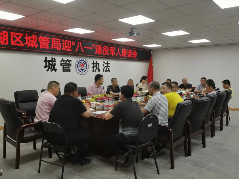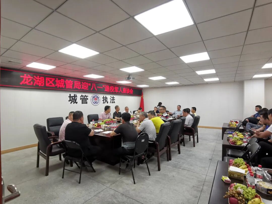 在中国人民解放军建军93周年来临之际,今天下午,龙湖区城管局召开迎“八一”退役军人座谈会。局班子在家领导与40多名退役军人欢聚一堂,共庆“八一”建军佳节,同叙军民鱼水情谊。