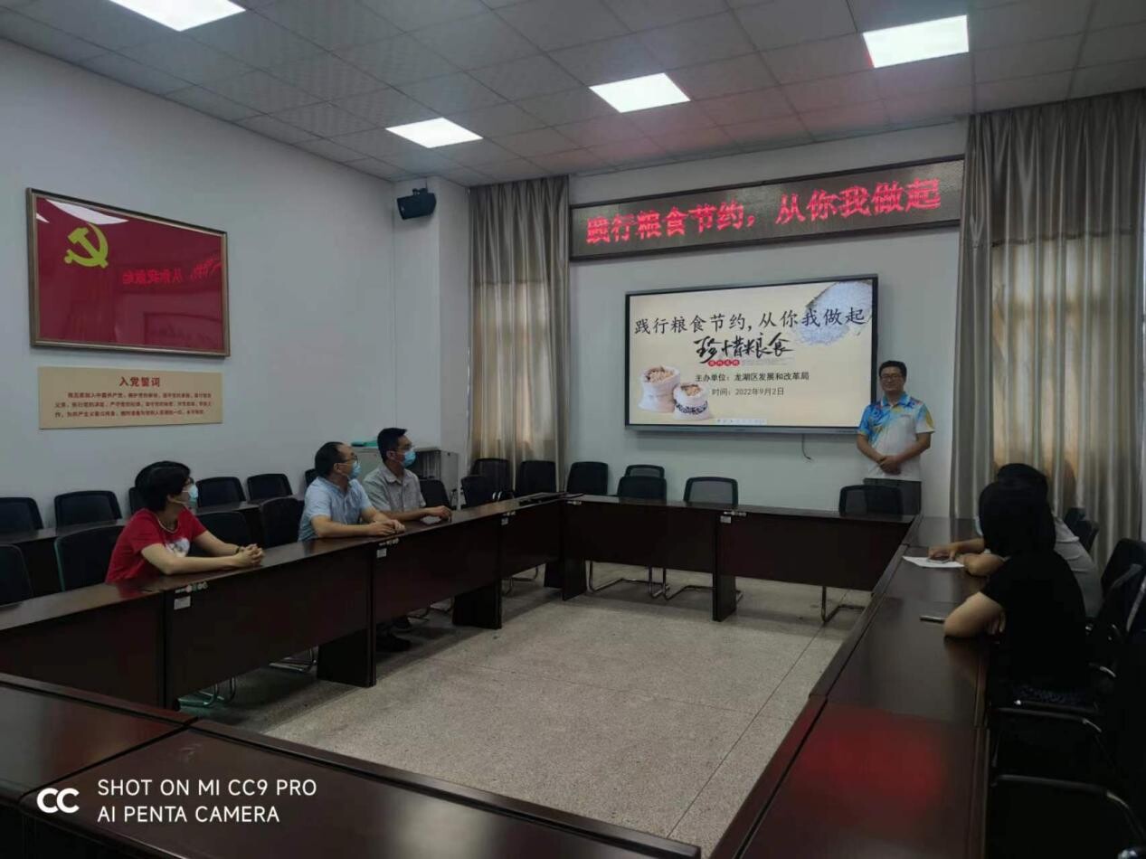 根据市食品药品安全与高质量发展委员会办公室关于开展2022年食品安全宣传周活动的通知精神,近日,区发展和改革局(粮食和物资储备局)联合区机关事务局在龙湖区物产楼机关食堂开展“践行粮食节约,从你我做起”宣传活动,在机关食堂入口处、内墙上、餐桌上和电子屏幕等醒目位置都摆放有“厉行节约 反对浪费”的海报和宣传画,倡导大家文明用餐,用实际行动践行粮食节约精神,共同助力粮食安全。此外,还在我局开展“践行粮食节约,从你我做起”宣讲活动,正确引导大家爱粮节粮、绿色健康饮食。