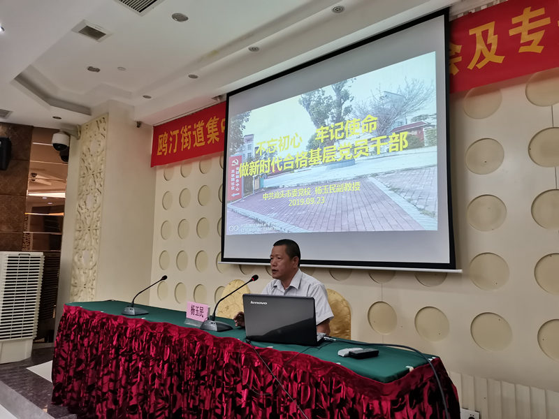 动员会结束后随即召开鸥汀街道党工委理论学习中心组会议,邀请市委党校副教授杨玉民同志为全体参会同志作题为《不忘初心、牢记使命,做新时代合格基层党员干部》的专题辅导。杨教授以中国近代史为脉络,深刻解读中国共产党人的“初心”、“使命”的内涵,从实现“两个一百年”奋斗目标的大局出发,结合基层实际工作特点,就如何做一名新时代合格的基层党员干部提出几点要求。杨教授用深入浅出的表达,为与会者上了一堂引人深思、提振精神的党课。