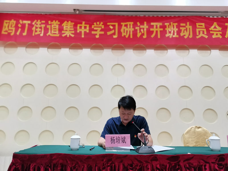 9月23日下午,鸥汀街道召开“不忘初心、牢记使命”主题教育集中学习研讨开班动员会暨专题教育讲座。街道党工委书记、主题教育领导小组组长杨培斌同志主持会议并讲话。鸥汀街道机关党支部全体党员、各社区“两委”干部参加会议。