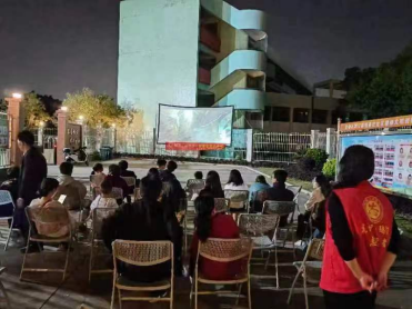 夜幕早早降临,闻讯赶来的男女老少三五成群聚集在蔡社社区文化文体广场,志愿者们热情引导,井然有序地安排大家入座。放映开始,《志愿军:雄兵出击》与《明日战记》双片连映,紧张刺激的剧情立刻抓住了观众的心。