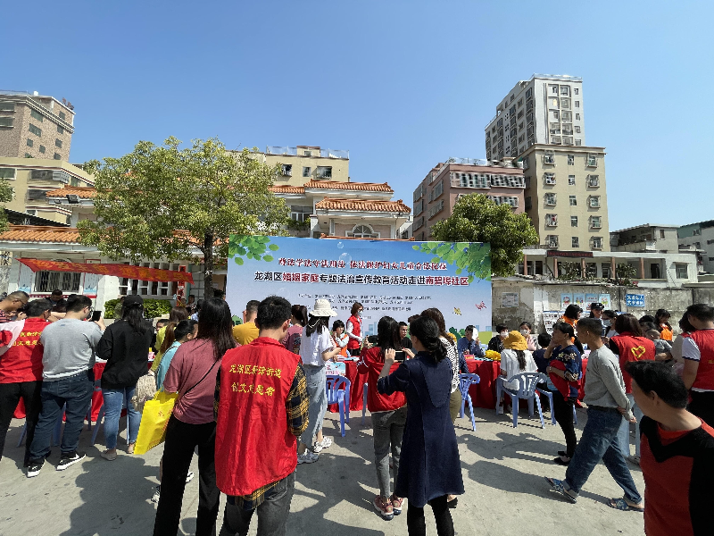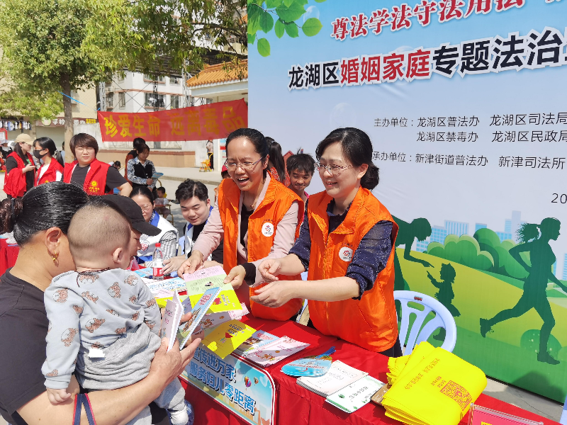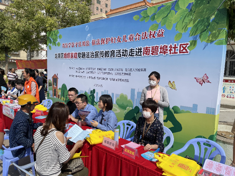 为贯彻省委十二届十三次全会和市委十一届十六次全会精神,落实省委“1+1+9”、市委“1146”工程,以及汕普办【2021】4号文件精神要求,结合队伍教育整顿和党史学习教育工作要求,4月22日上午,龙湖区普法办、区司法局联合区妇联、区民政局、区人民检察院、区人民法院、区禁毒办、新津街道在南碧埠社区开展主题为“龙湖区婚姻家庭专题法治宣传教育活动,切实开展好“我为群众办实事”活动,活动现场吸引了社区居民以及外来务工人员近200人参加。