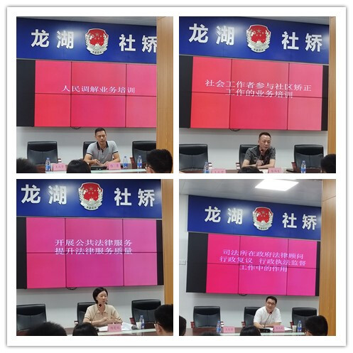 8月3日至8月6日,区司法局龙华司法所所长陈勇同志、区司法局社区矫正股股长黎伟生同志、区司法局党组成员、副局长杨楚娟同志、区司法局党组成员、副局长陈文欢同志分别就人民调解及时介入纠纷的重要性、社会工作者参与社区矫正工作业务、协助开展公共法律服务提升法律服务质量、司法所在政府法律顾问、行政复议及行政执法监督工作中的作用等主题开展培训。培训后,司法协理员参加考试。