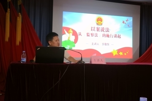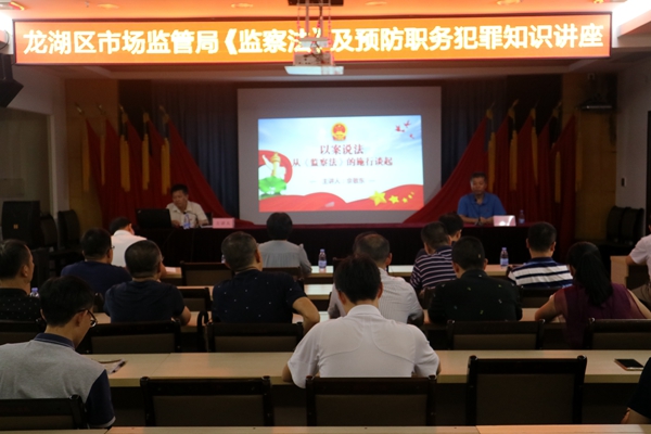 为认真学习领会《监察法》,增强区局干部职工廉洁从政意识和拒腐防变能力,进一步实现全面从严治党。7月19日,龙湖区市场监督管理局邀请龙湖区监委委员、正科级纪检监察员佘敬东同志作《以案说法——从<监察法>的施行谈起》专题讲座。区局机关全体人员、各市场监管所正副所长以及纪检监察员共计74人聆听了知识讲座。