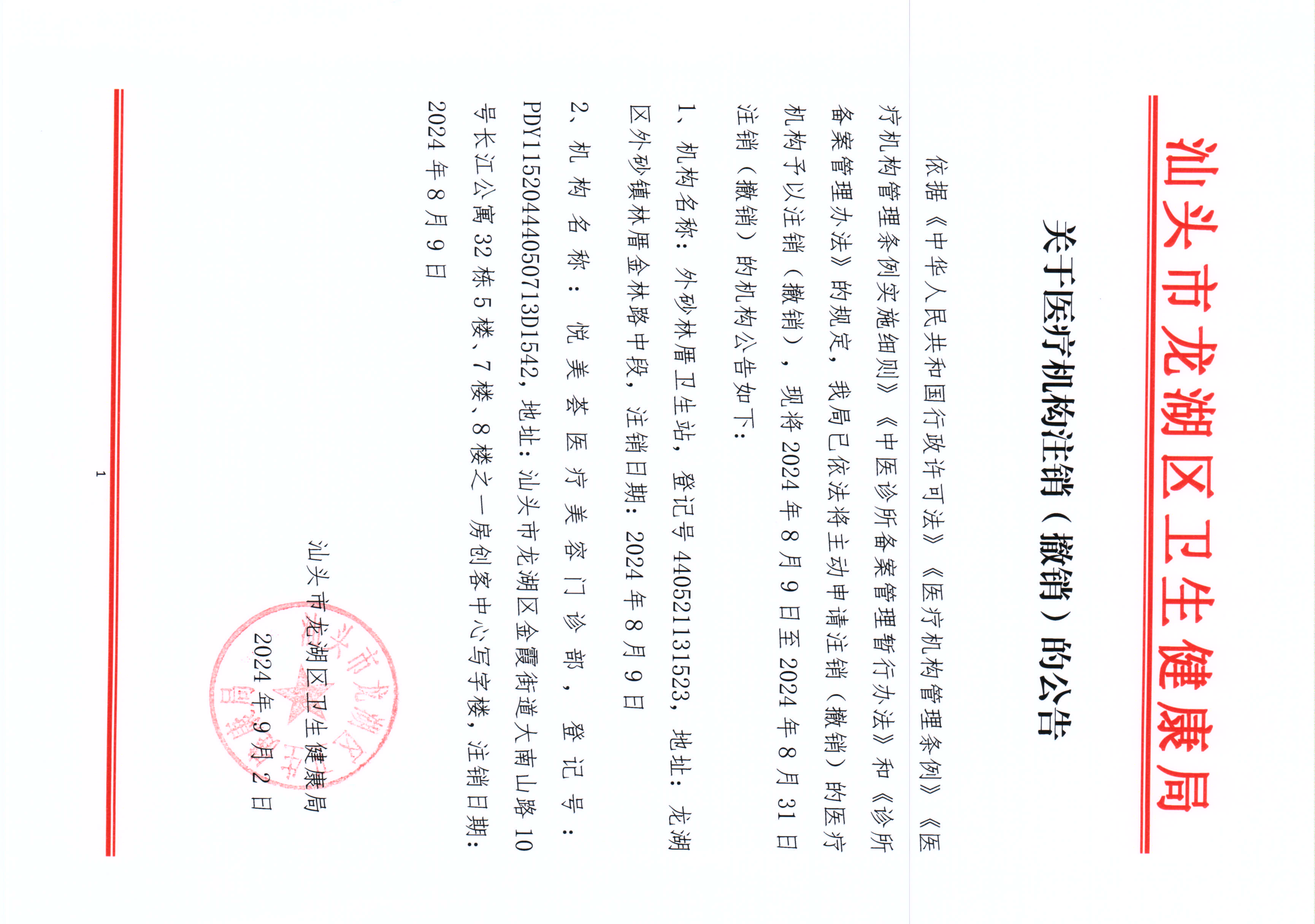 关于医疗机构注销(撤销)的公告