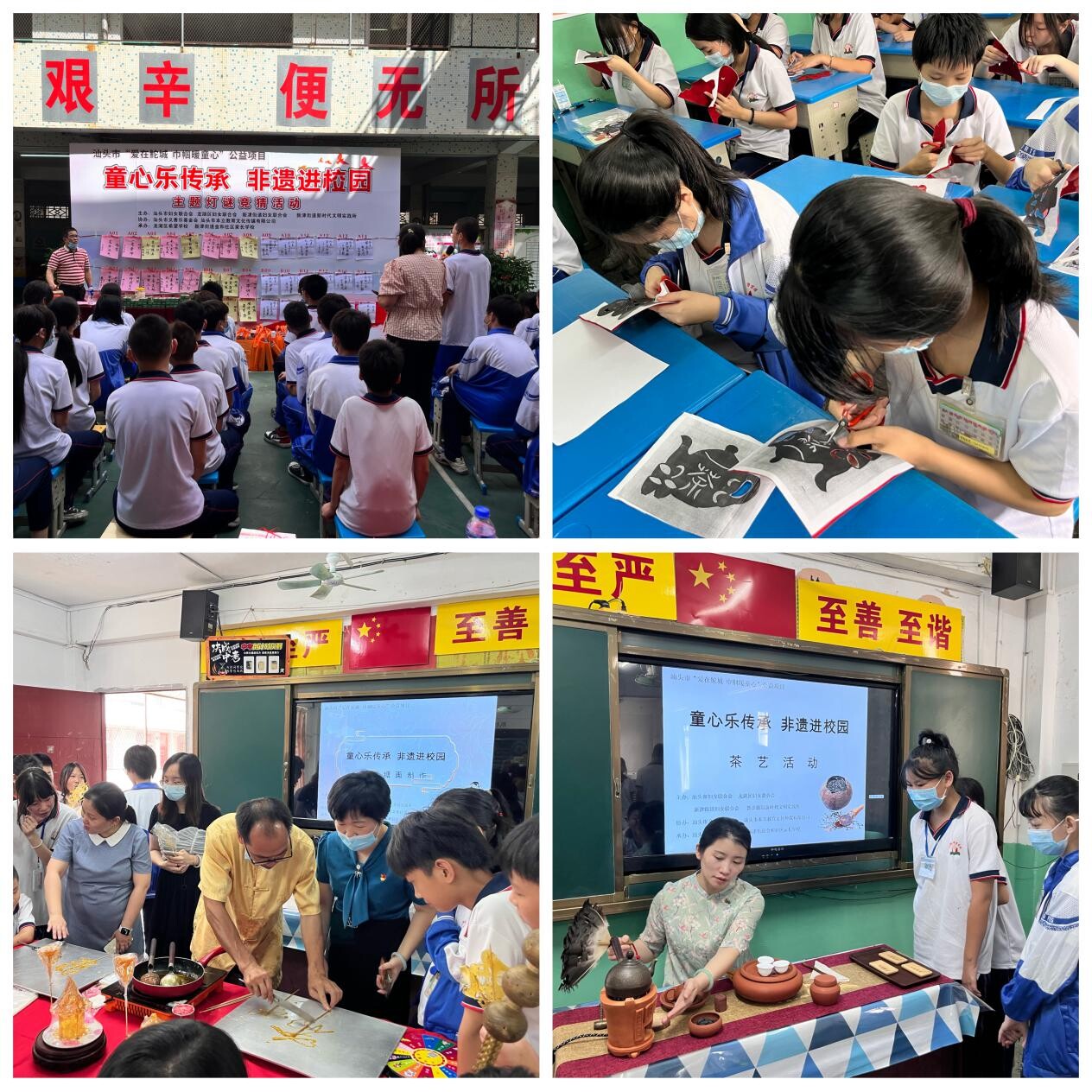 伴随鼓声,剪纸、茶艺、麦芽糖制作、知识灯谜竞猜等非遗进入校园和希望学校的孩子们来一场完美的邂逅。活动中,各位非遗老师现场分享非遗文化知识和意义,为孩子们带来一场文化的盛宴,让孩子们一起近距离感受非遗之美。通过体验,互动式学习,让孩子们意识到传承文化的重要性,从而更加积极主动的学习、传承和发扬中国优秀传统文化。
