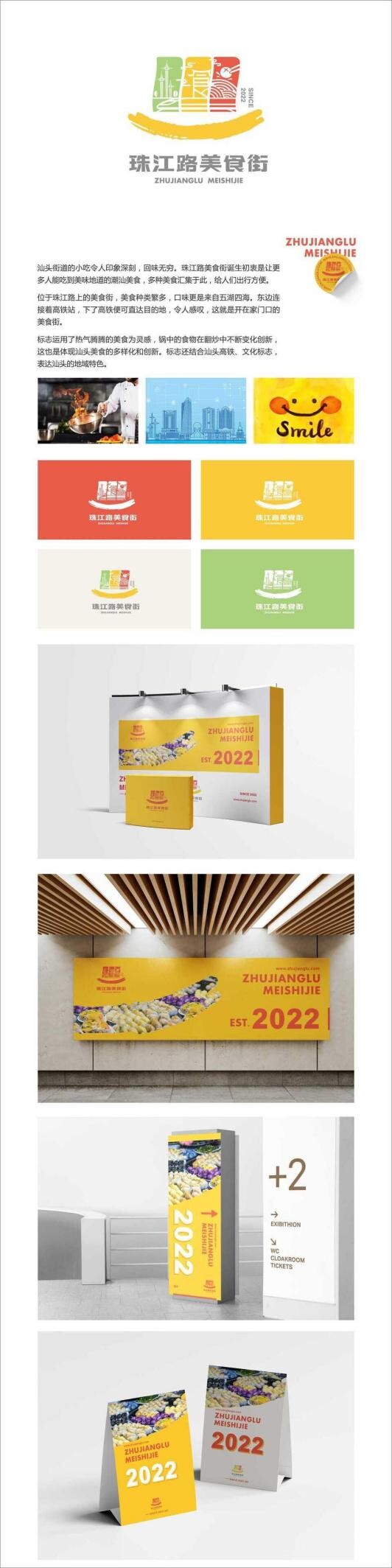 2022年初,位于汕头市龙湖区新津街道的“珠江路美食街”被广东省商务厅授予“广东省粤菜美食街”荣誉称号,是粤东地区首批认定的粤菜美食街。为充分呈现珠江路美食街扩容提质后的新面貌,凸显美食街历史悠久的独特文化内涵,增强大众对珠江路美食街美食、高铁、文化、旅游的记忆点,主办方新津街道于2022年11月12日启动“珠江路美食街LOGO(标识)”设计作品征集系列活动,广泛征集珠江路美食街LOGO(标识)的设计概念及成果。活动得到社会各界热烈响应,至12月15日,共收到设计作品183件。