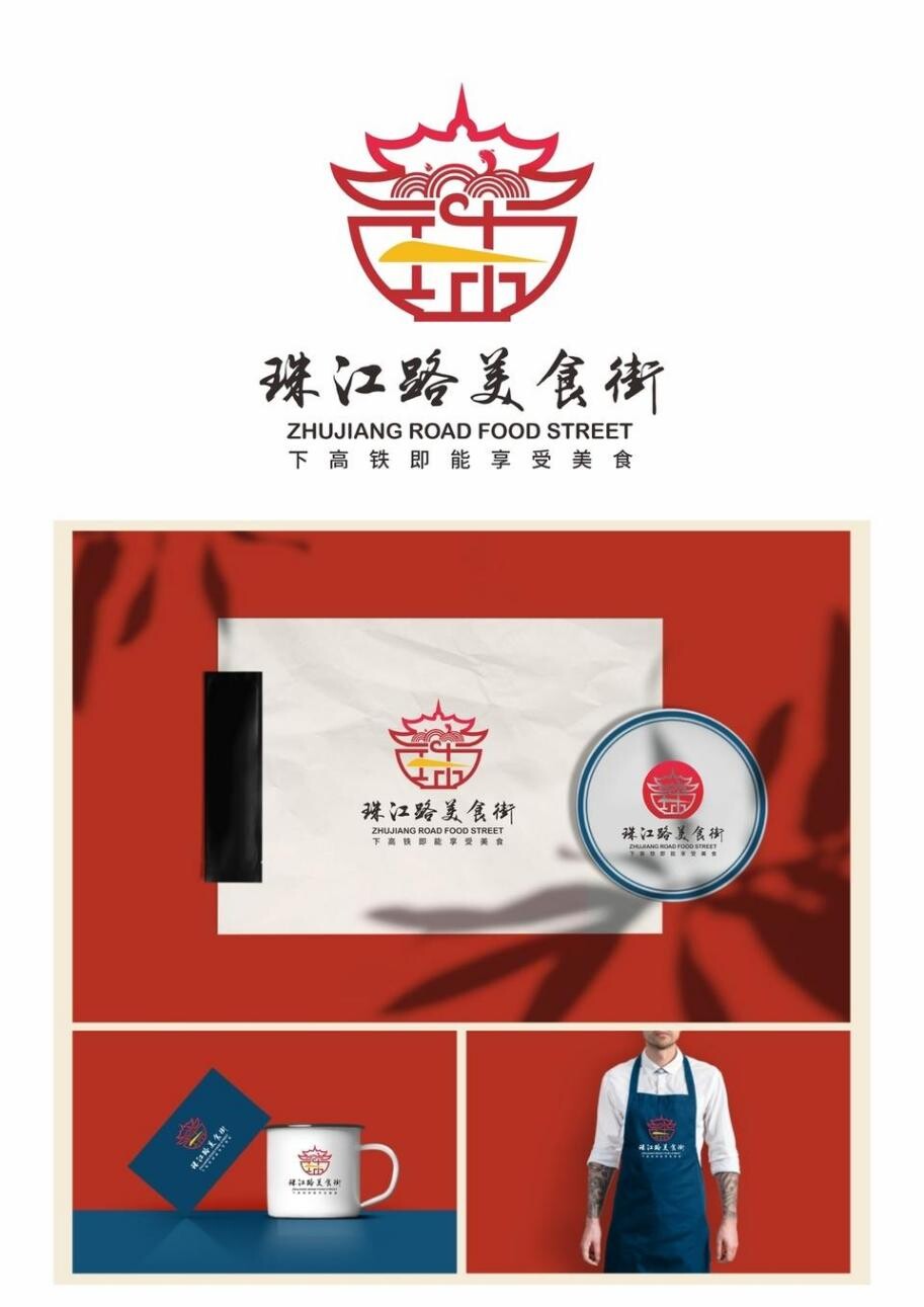 1、标识以为珠江路拼音首字母ZJL为基础元素展开设计,巧妙的融合高铁、美食街古建筑,碗筷、浪花鱼儿等元素,整体上体现珠江路美食街“高铁+美食”特色餐饮街主题特征。
