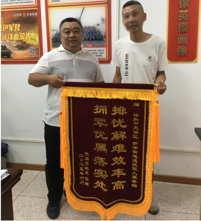 “拥军优属落实处,排忧解难效率高”。近日,新津街道紫云社区原现役军人家属李先生向街道退役军人服务站赠送锦旗,感谢街道退役军人服务站高效协助办理广东省退役军人应急救助资金申请事宜。
