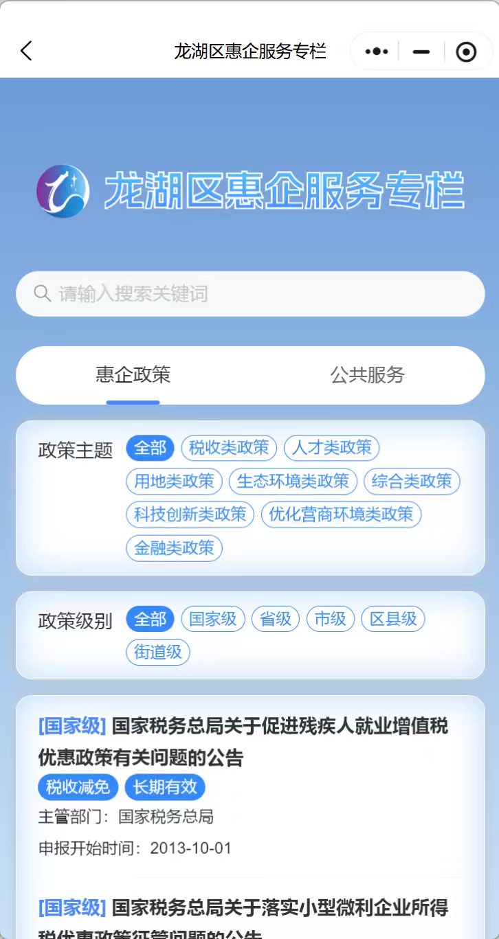 “龙湖区惠企服务专栏”接入以下网站或程序: