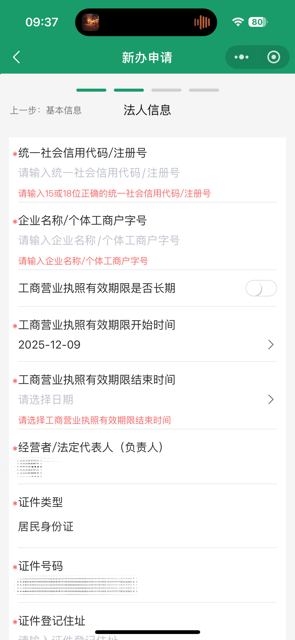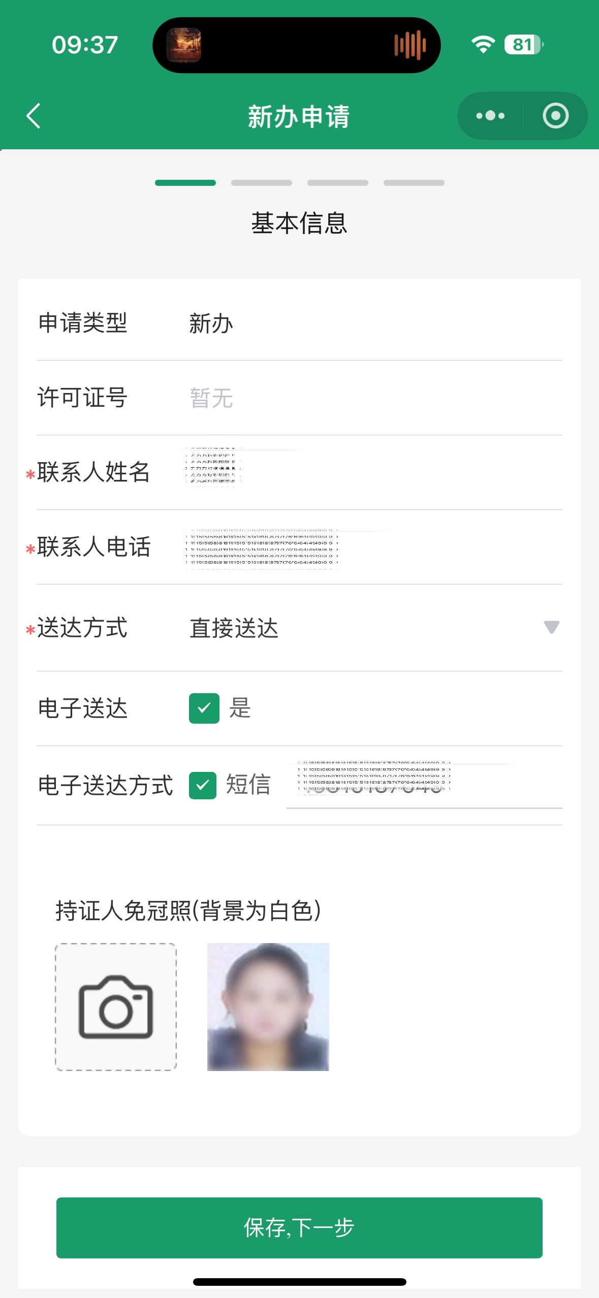 3.根据实际情况准确填写基本信息和法人信息页面,带“*”号的为必填项,填写完成后,点击最下方【保存,下一步】。