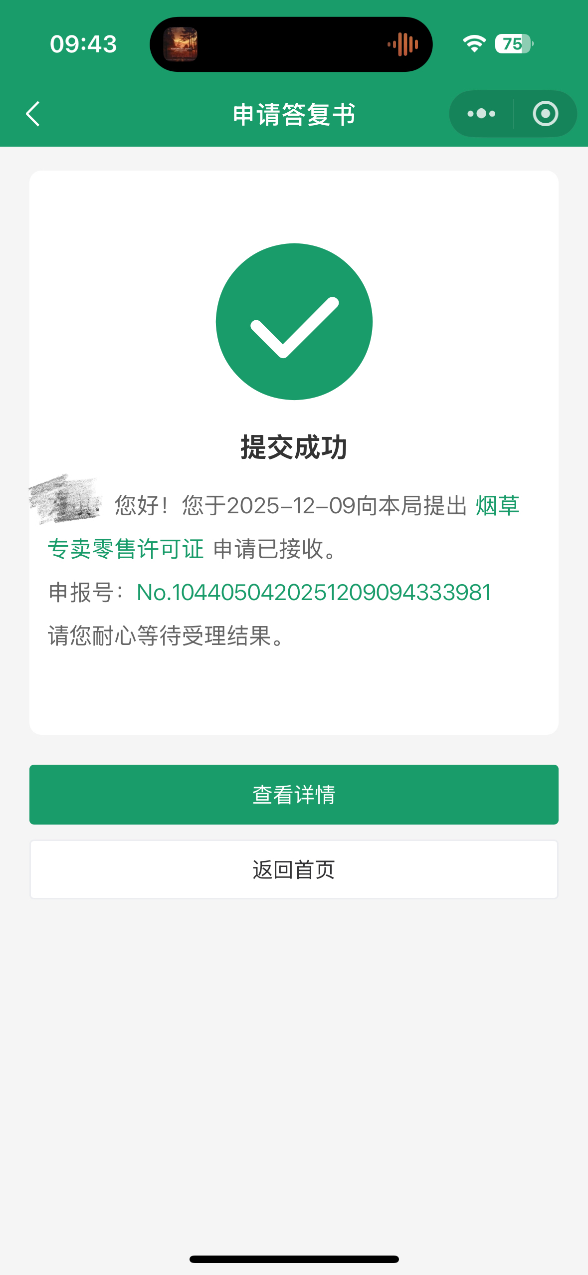 5.提交申请后系统将生成申请编号,可通过平台首页点击【我的】—【我的办件】查询业务办理状态。