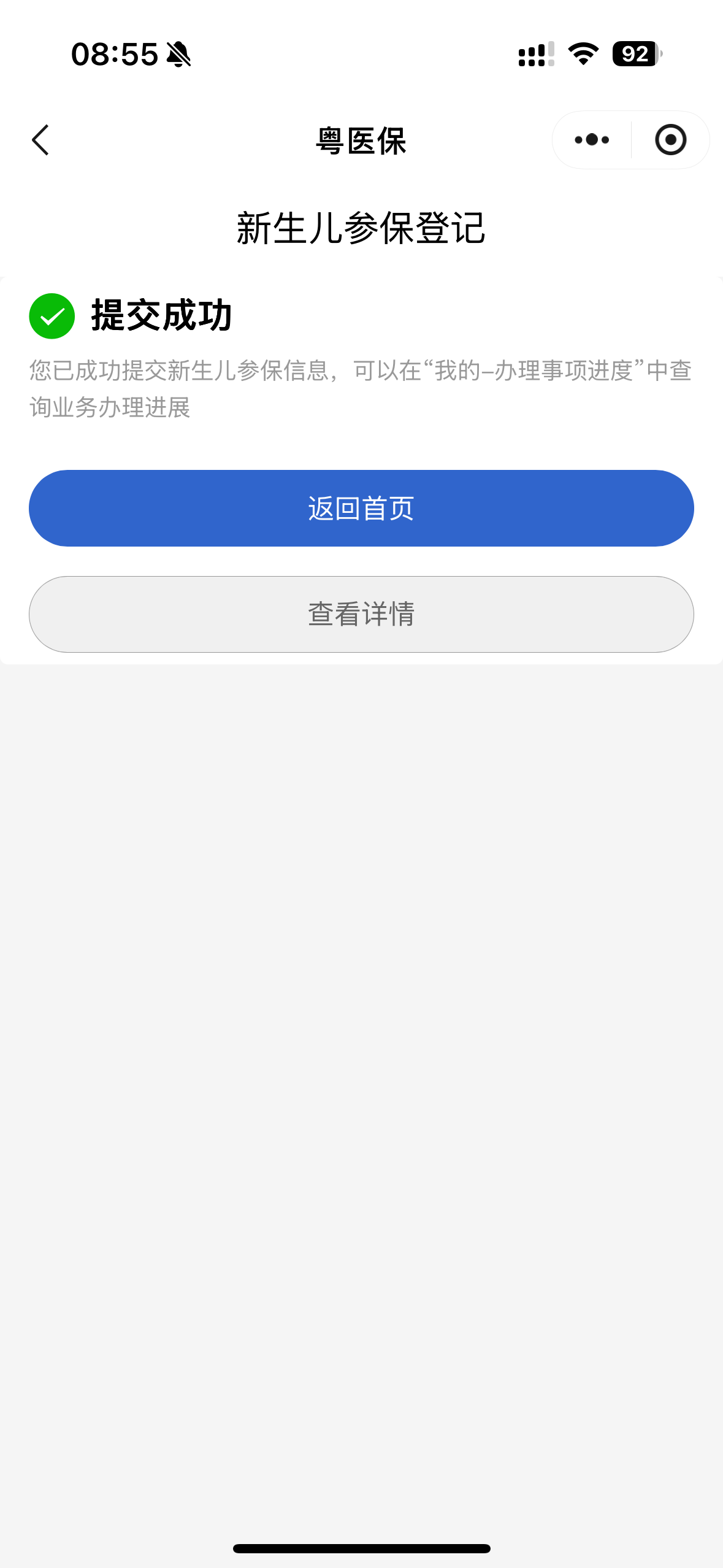 5.提交成功后,可以返回首页,点击【我的】—【办理事项进度】中查询业务办理进度。
