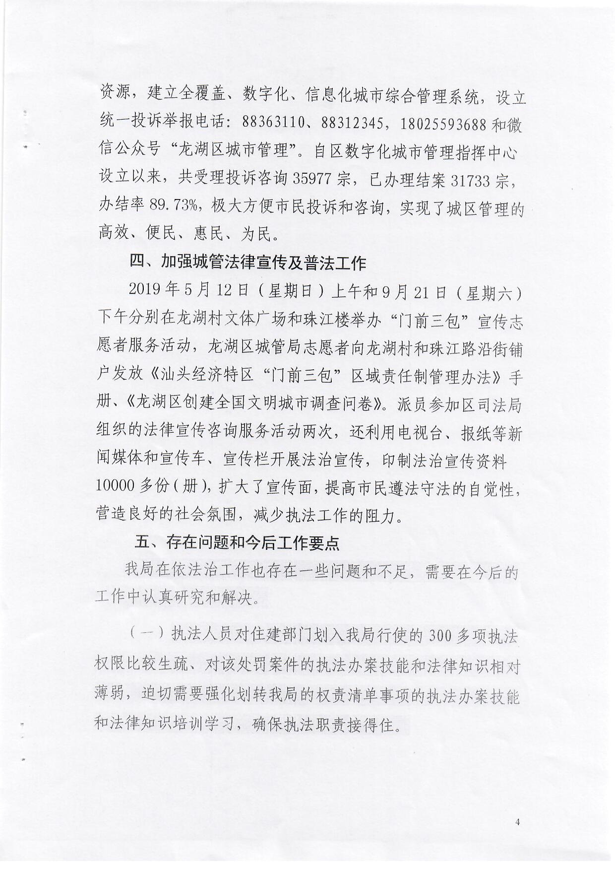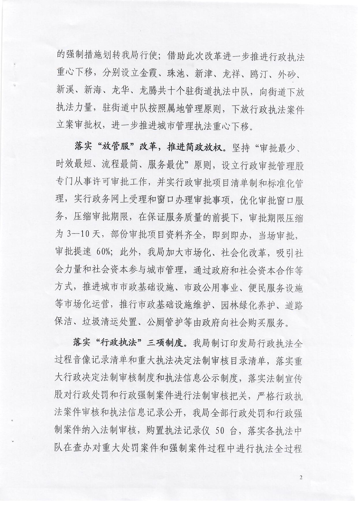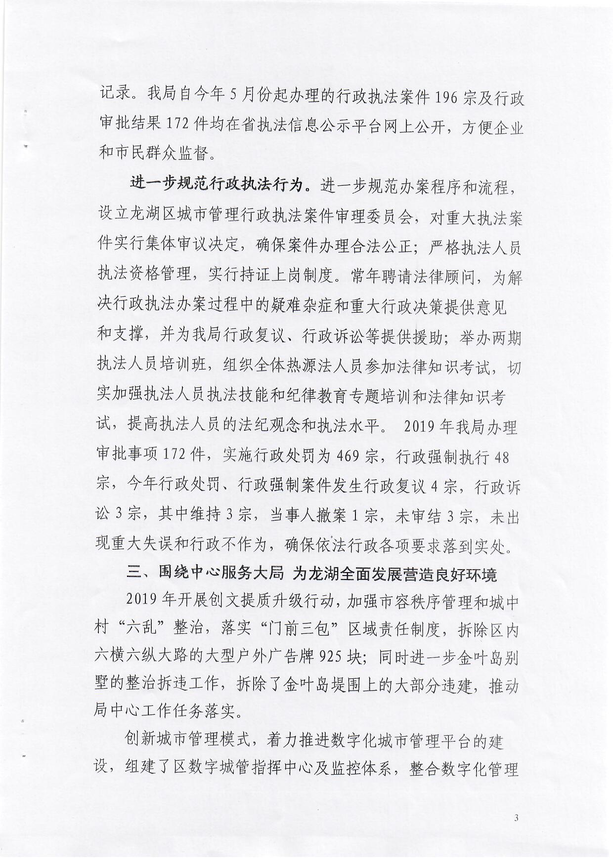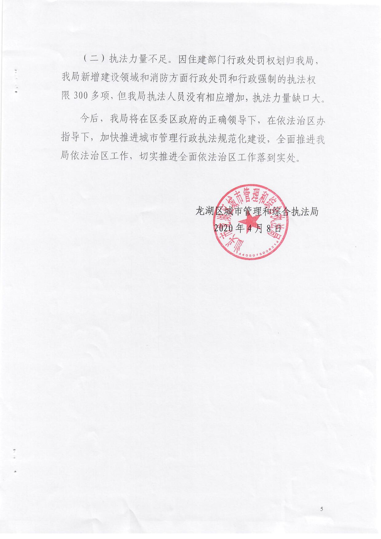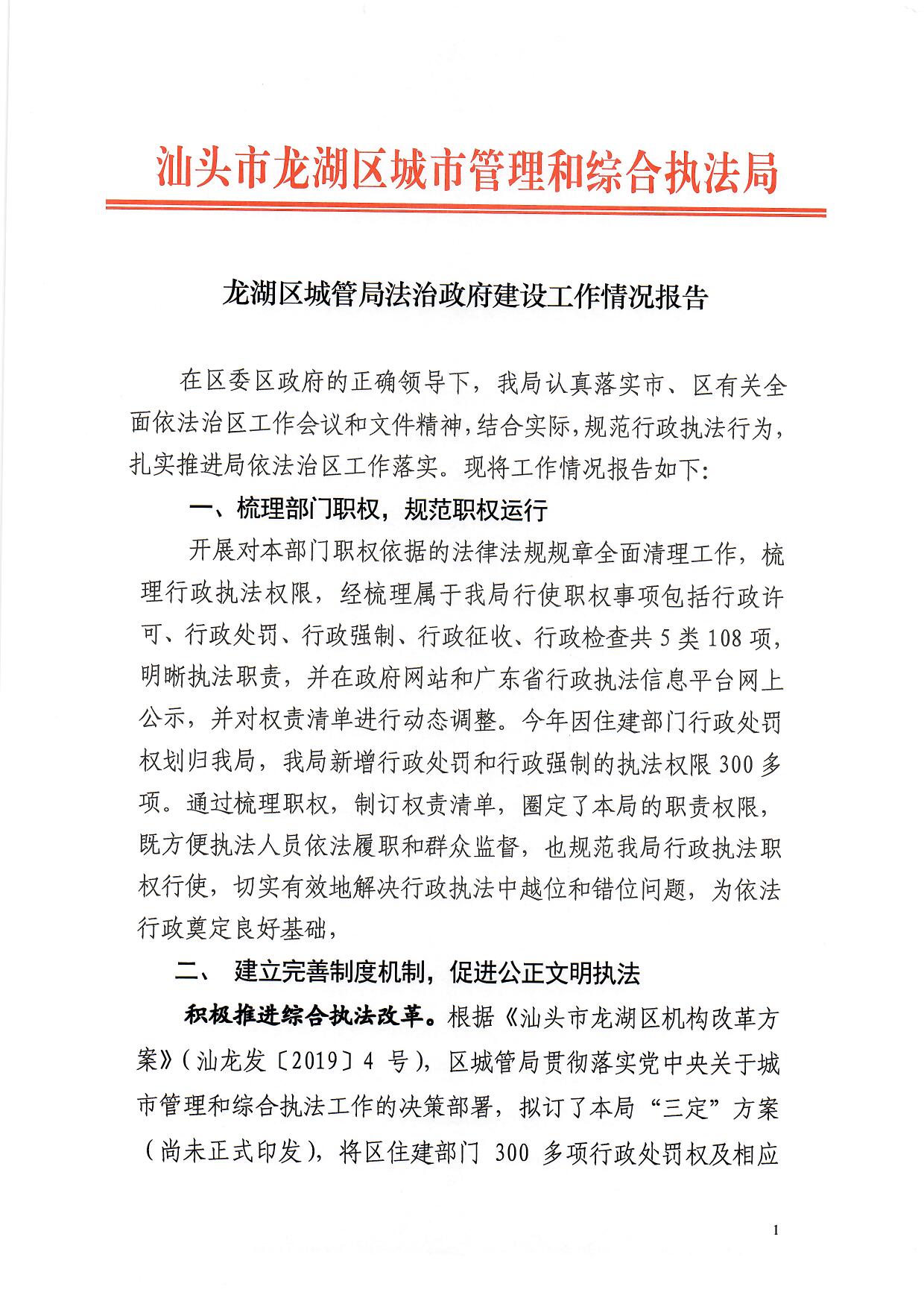 龙湖区城管局法治政府建设工作情况报告