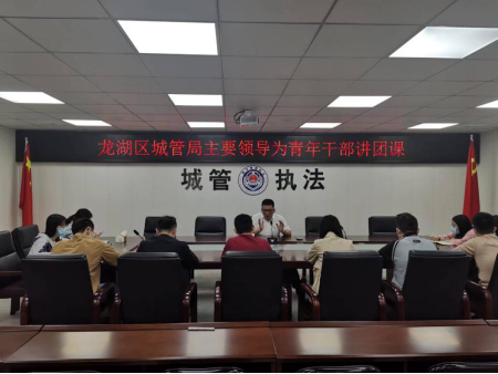 真学、真懂、真用。 3月22日,龙湖区城管局团支部邀请局党组书记、局长薛跃腾为局青年干部讲团课,树立真抓实干的“风向标”。团课围绕作风能力建设及新形势下城市管理队伍青年干部的成长等方面展开,传授工作办法和经验,鼓励城管青年们始终牢固树立“以人民为中心”的执法理念,把人民对美好生活的向往作为城管工作的出发点和落脚点。薛跃腾同志说,抬头望远、埋头苦干、心中有梦,才能志气更高、骨气更硬、底气更足,通过能力提升、学用结合,把握工作主动权,锻造一支政治可靠、本领过硬、作风扎实,具有模范作用的青年队伍,以优异成绩迎接建团 100 周年。