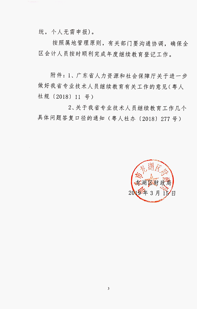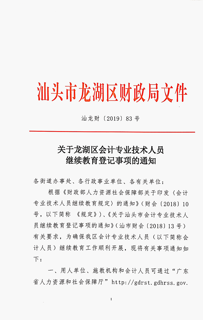 关于龙湖区会计专业技术人员继续教育登记事项的通知