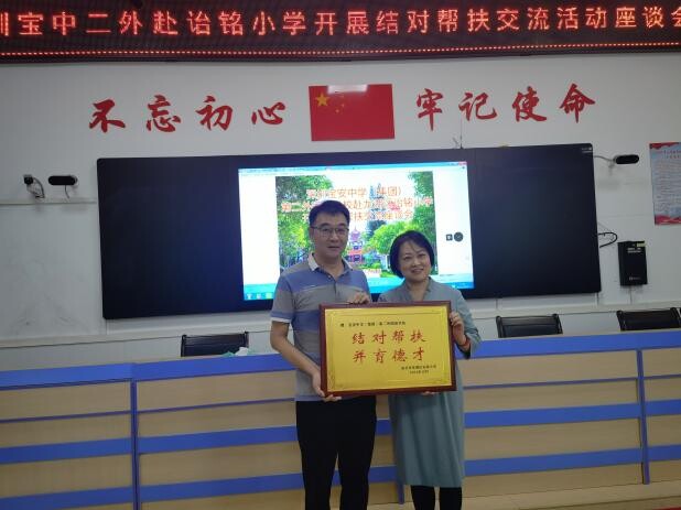 陈彩丽副校长表示,此次带队来到龙湖区诒铭小学,为两校结对帮扶打响了第一炮,希望今后两校携手共进,一起向未来!下来,宝中二外将与诒铭小学手拉手、心连心,开创结对帮扶发展新局面;广撒网、多捞鱼,在教育教学各方面各维度打造结对帮扶学习共同体;做实事、求实效,不负众望,结出硕果累累。在这场双向扶持、双向奔赴的活动中,真正实现“诒宝”共赢。