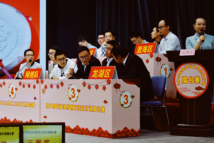 活动现场,来自汕头市7个区县的灯谜代表队,与通过法治灯谜网络大赛选拔的网络队同台竞技。现场比赛非常激烈,精彩纷呈,以电控抢答的方式,经过集体答题、个人轮答、集体抢答三轮的角逐,龙湖区代表队最终以总分410分的高分拔得头筹,荣获一等奖,摘得汕头市首届创文法治灯谜擂台赛的桂冠。市司法局局长周茹茵同志为龙湖区代表队颁奖。