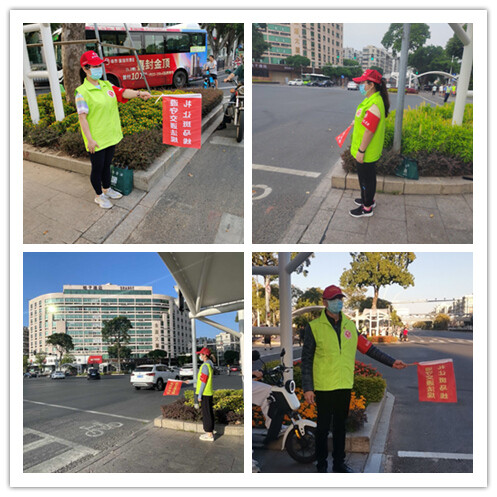 为推动文明交通深入开展,根据区创建办工作部署,我局积极响应,组织党员干部在重点路口开展文明交通志愿服务活动。2022年9月9日-10日、10月9日-11日每天上下班高峰期安排1名志愿者,在中山-金环路口协助交警维持交通秩序,志愿者们对来往行人车辆进行耐心劝导,并向过往人群积极宣传交通安全方面的法律法规,提醒行人不要闯红灯,对闯红灯的行人进行口头提示,帮助行动不便的群众过马路,切实开展好文明交通志愿服务活动,扎实当好文明汕头“宣传员”。
