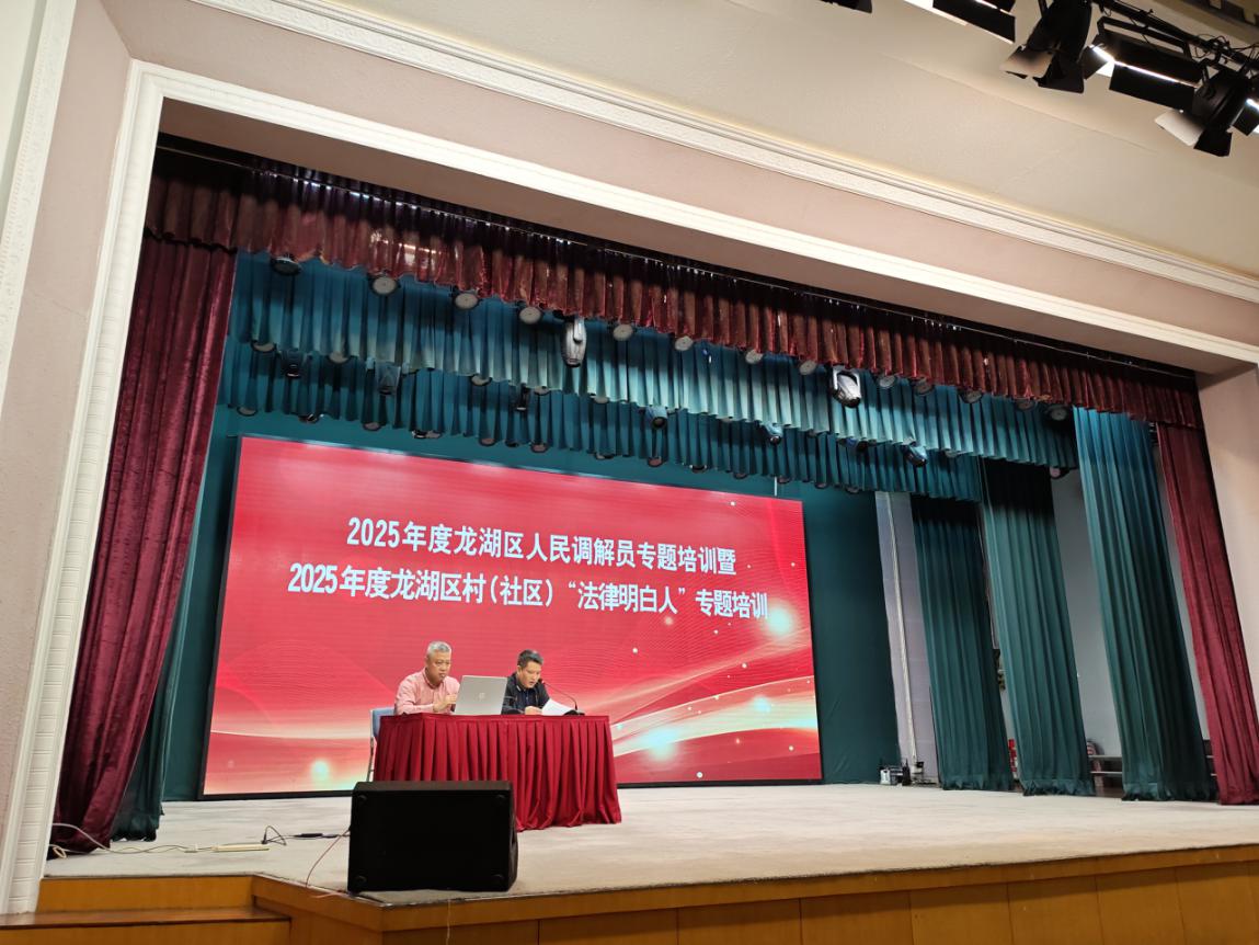 为持续提升龙湖区人民调解员、村(社区)法律明白人队伍建设水平,龙湖区司法局积极探索司法行政业务培训新思路,找准人民调解与普法宣传业务工作“契合点”、培训内容“公约数”,10月24日,在龙湖区翰苑会堂组织开展2025年度龙湖区人民调解员专题培训暨2025年度龙湖区村(社区)“法律明白人”专题培训。