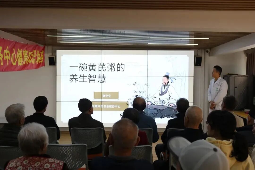 中医药健康知识讲座成为活动开篇的一大亮点。特邀主讲人金霞社区卫生服务中心中医师黄少炎以“一碗黄芪粥的养生智慧”为主题,结合冬季养生特点与自身丰富的临床经验,用通俗易懂的语言讲解了中药食疗的原理、黄芪等常见食材的养生功效及冬季慢病调理技巧。讲座过程中,黄医师与居民积极互动,针对大家提出的失眠、关节疼痛、血糖控制等问题逐一细致解答,居民们认真聆听,不时拿起手机拍照记录要点,现场氛围热烈。“以前总觉得中医养生很复杂,听了黄医生的讲座才知道,原来一碗粥就能起到养生效果,太实用了!”,居民李阿姨听完讲座后,连连称赞讲座内容接地气、有价值。