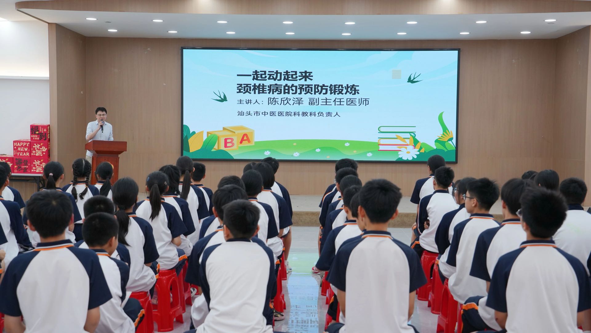 4月10日下午,龙湖区“服务基层先锋行,助力‘百千万工程’——家门口的‘医’靠”之“文明健康医+益”项目走进嘉晋学校,一场以“爱护颈椎,颈椎病的防范与治疗”为主题的科普讲座在这里开讲。