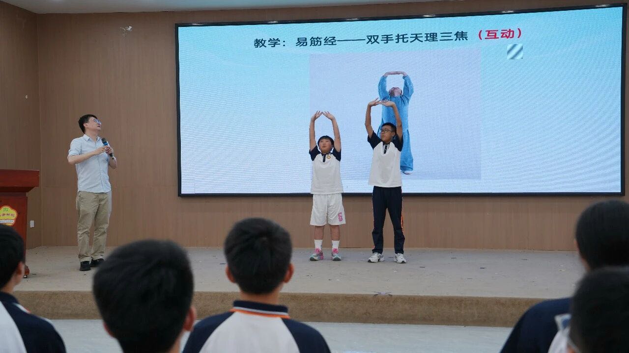 讲座过程中互动不断,陈欣泽医生还在现场亲自示范“易筋经——双手托天理三焦”等锻炼颈椎动作,一招一式清晰规范、简单易学。在场师生纷纷跟着起身模仿,在轻松欢乐的氛围里掌握了科学护颈的实用技能,进一步加深了对颈椎健康养护的认识与重视。
