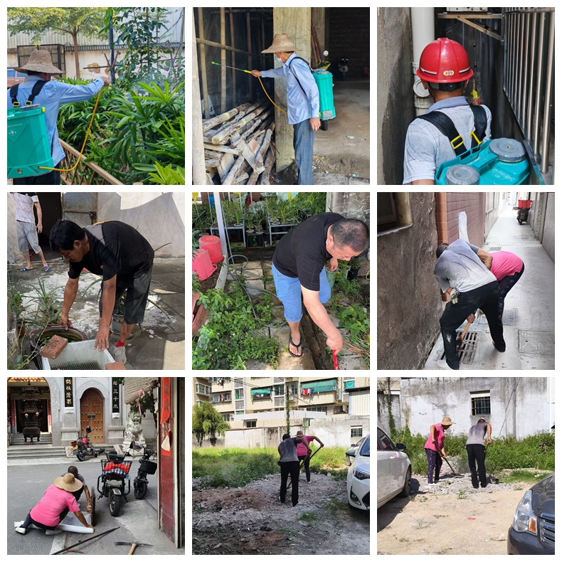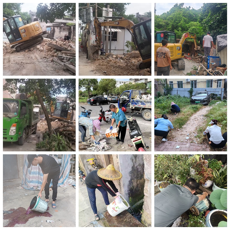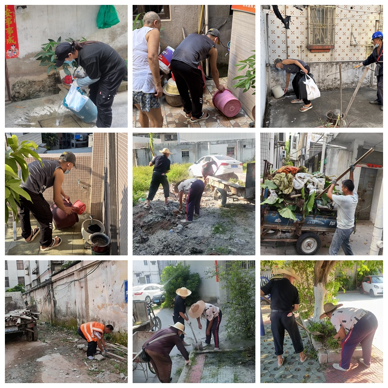 活动中,街居二级党员干部、工作人员以各社区网格化为依托,清理垃圾杂物,清扫大街小巷,清除空置老屋、绿化带、天台、闲置空地积水杂草,在下水道沟井盖安装防蚊网,并借助第三方专业消杀队伍进行灭蚊喷杀,组织大型机械拆除违建、危房,进村入户宣传防疫常识,多措并举切断蚊媒滋生链条,为辖区居民筑牢“两热”防控安全防线。