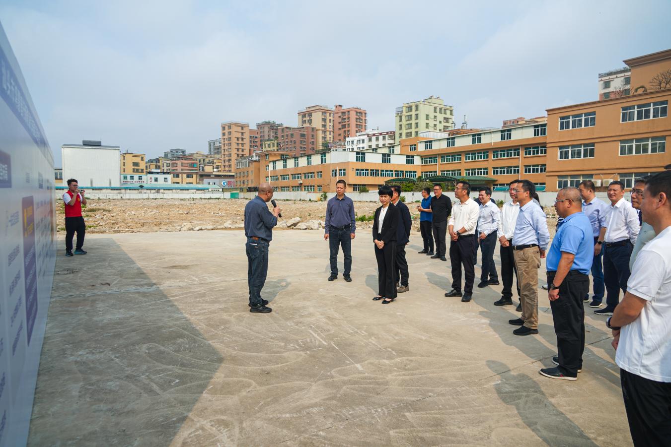 在南和社区汽车综合性产业园,与会人员实地了解新津街道盘活闲置集体用地的“新津模式”实践成果。该项目总投资约8000万元,规划建设集品牌体验、整车销售、售后服务于一体的高端汽车综合园区,计划运营智界、享界等五大华为相关品牌,带动辖区新能源汽车产业集聚,助力打造集“展、销、服、研、用”于一体的现代化汽车服务生态圈。为推动项目落地,街道靠前服务,精准对接东莞市骏威汽车服务控股有限公司用地需求,并持续对接跟进区职能部门,盘活利用闲置用地。目前正在走“四议两公开”程序,力争实现集体资产增值与社会效益多方共赢。作为闲置集体用地盘活上的先行先试之作,新津街道将不断探索梳理“政策衔接、流程规范、政企协同、产业适配”的用地落地路径,为后续同类工作提供可复制、可推广的实践经验。
