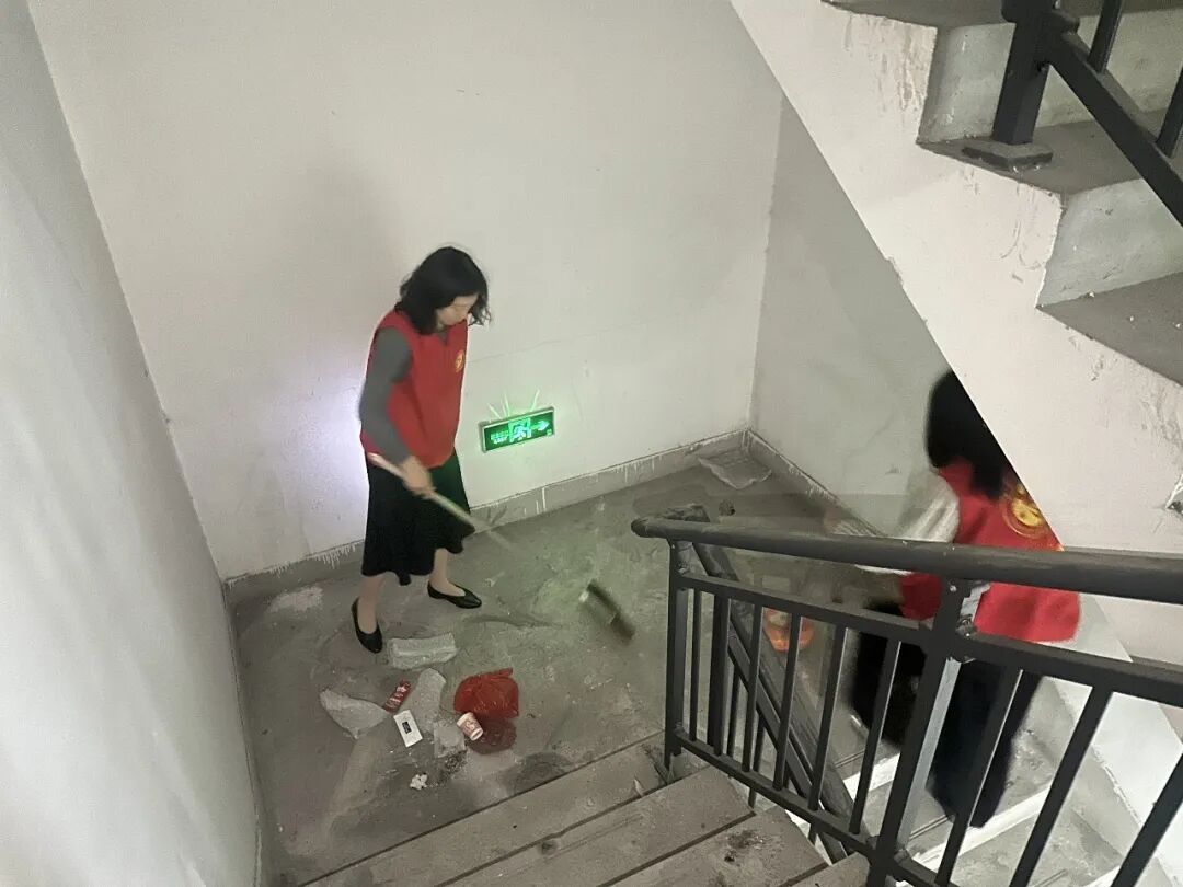 清扫组志愿者化身“环境卫士”从顶楼逐层向下推进,清理杂物、清扫积尘。大家分工协作,有的搬运废弃家具,有的清理卫生死角,不放过任何一处细节。原本杂乱拥堵的楼道,在大家辛勤劳动下,变得宽敞明亮、干净整洁。他们用汗水践行“奉献、友爱、互助、进步”的志愿精神,成为龙祥街道最亮眼的风景线。