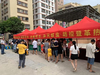 现场市爱卫会各成员单位、志愿者、群众热情参与,齐齐挥动扫把,清理卫生死角,清除蚊媒滋生地,逐户发放宣传资料、防蚊灭蚊用品,宣传普及登革热防控知识,专业消杀公司开展成蚊灭杀,共同为登革热防控贡献力量。
