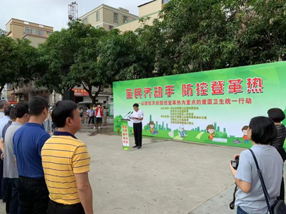 大暑时节,乍雨还晴,为广泛宣传登革热防控,动员全员共同参与,8月3日,由汕头市爱卫会、市卫生健康局、龙湖区人民政府主办,市爱卫办、龙湖区卫生健康局、新津街道办事处承办的主题为“全民齐动手 防控登革热”的以防蚊灭蚊防控登革热为重点的爱国卫生统一行动,在新津街道南碧埠居委文化广场举行。