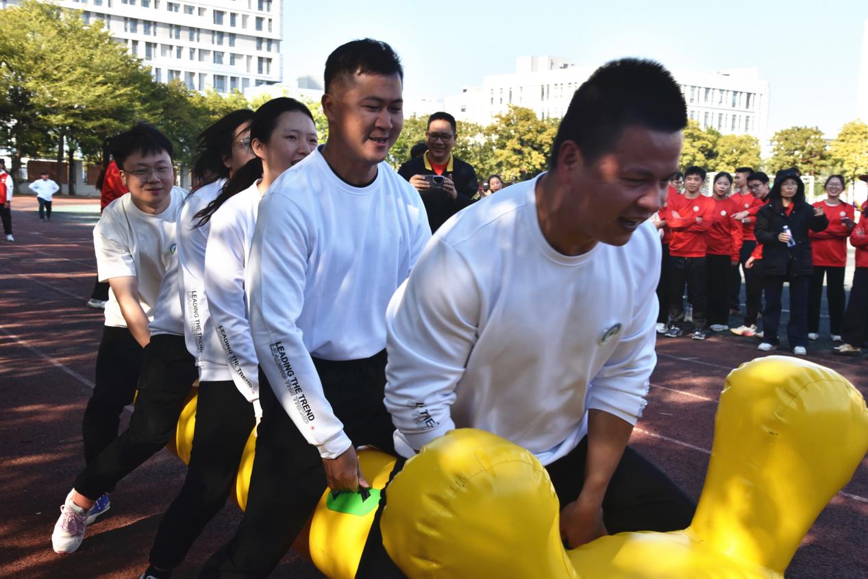 本次趣味运动会特别设置“男女混合拔河赛”环节。赛场上,12支队伍轮番上阵,心往一处想,力往一处出,尽情享受运动竞技带来的快乐。各支啦啦队呐喊助威,热情高涨,将整个比赛推向了高潮,此起彼伏的掌声和欢声笑语充满整个赛场。