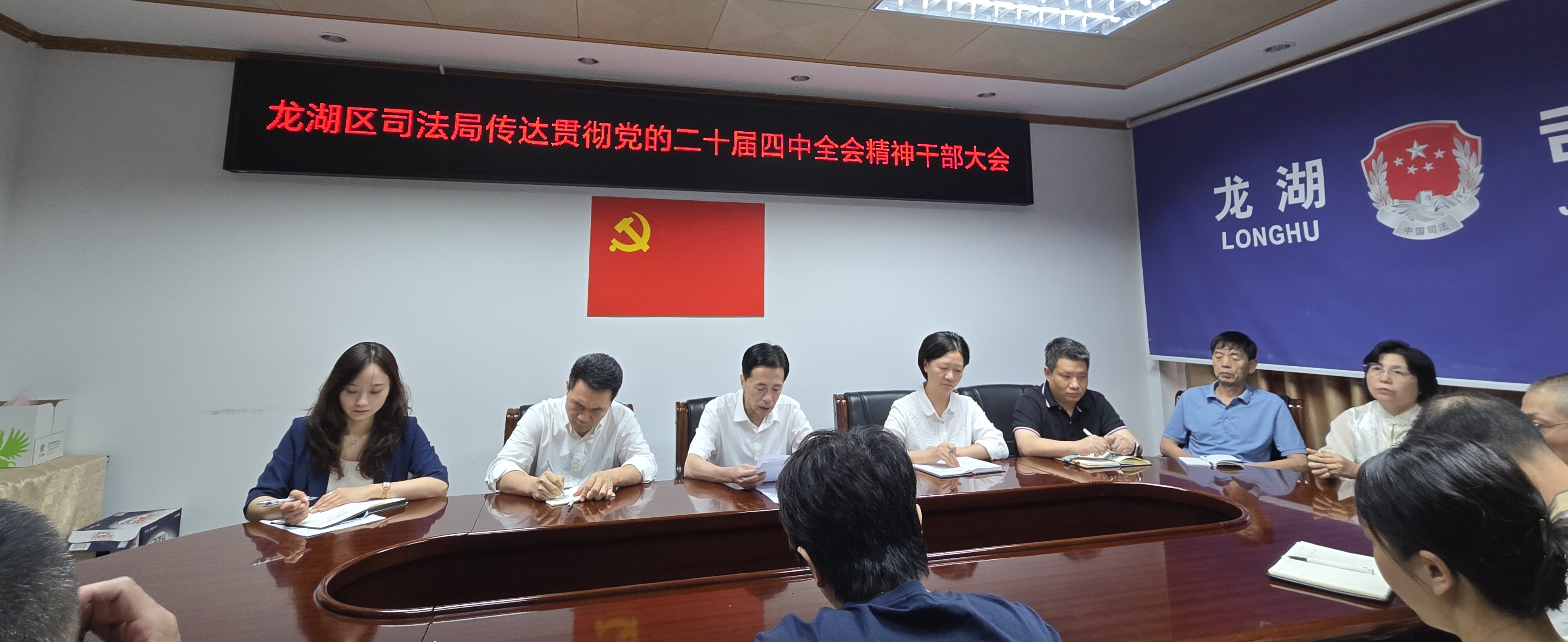 10月29日下午,龙湖区司法局召开干部大会,传达学习贯彻党的二十届四中全会精神。区司法局党组书记、局长陈东晓主持并讲话。