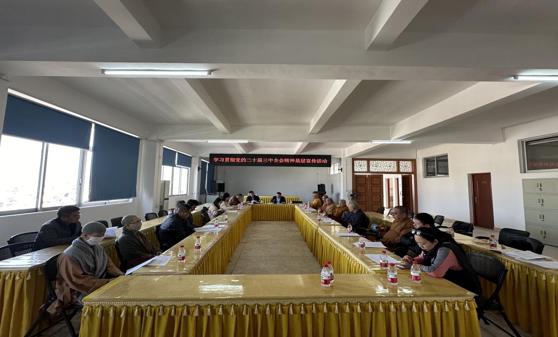 二是深入学习宣传贯彻习近平法治思想和党的民族宗教法规政策。区委统战部(民宗局)多次组织召开专题学习会,向局和各街道民宗干部、区宗教团体佛教协会、各场所教职人员传达学习贯彻党的二十大精神和党的二十届三中全会精神,学习全国两会精神,深入学习宣传贯彻习近平法治思想和关于民族宗教工作的论述、党中央的宗教工作方针政策,认真领会贯彻,团结带领广大民族宗教界人士永远跟党走、奋进新征程。