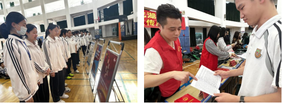 在活动现场,龙祥司法所联合龙祥街道平安办、新时代文明实践所、社工站、应急办、工会、团委等多部门,摆放宣传展板、悬挂宣传横幅、发放知识读本,集中宣传各部门法律法规及规定。龙祥司法所工作人员和普法志愿者带领师生们参观宪法专题区,向他们讲解学习宪法的重要性;结束前,各宣传单位向学生们发放宪法读本、民法典小册子、未成年人保护法、预防未成年人犯罪等彩页、法治小礼品等共600多套,学生们学习氛围浓烈,热情高涨。本次活动有效提升学生们的参与度与学习兴趣,教导学生们认识、了解宪法,养成尊法学法守法用法习惯,为未成年人健康成长创造了浓厚的法治文化氛围。