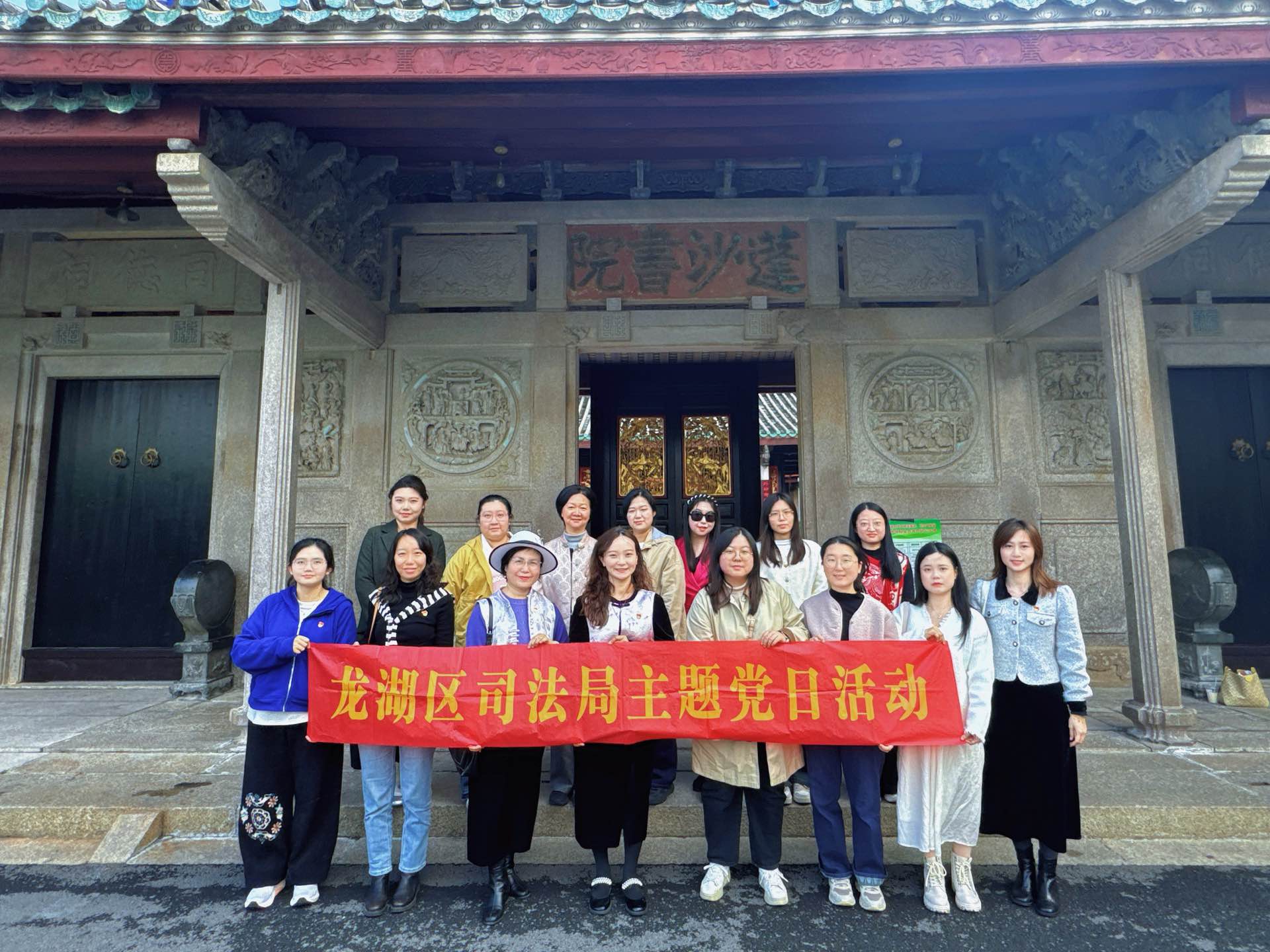 活动伊始,局党组成员、副局长杨楚娟带队参观了广东省文物保护单位——蓬沙书院。在这座百年建筑中,大家聆听历史沿革,观赏建筑细节,于古色古香的氛围里感悟潮汕文脉传承,在红色旧址前重温革命先辈的奋斗历程。杨楚娟同志强调,区司法行政系统的女职工是推动事业发展的中坚力量,要充分发挥“半边天”作用,坚守为民初心、强化党性修养,坚定理想信念,践行使命担当。