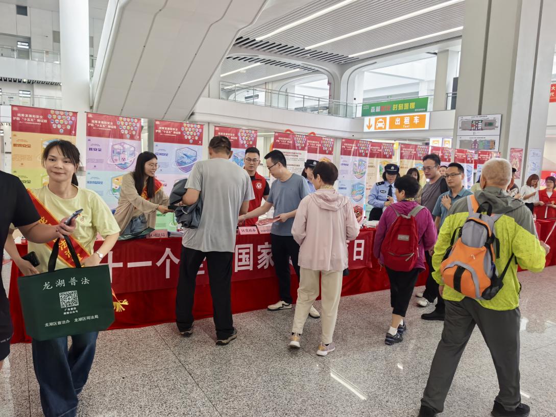 为深入学习贯彻总体国家安全观,推动国家安全法治宣传走深走实,在全民国家安全教育日来临之际,龙湖区普法办联合区委国安办、区综管办等部门走进汕头火车站,开展“统筹发展和安全 护航‘十五五’新征程”主题宣传教育活动,以城市交通枢纽为阵地,筑牢全民国家安全思想防线。