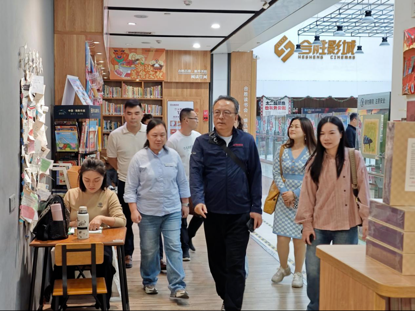 在合胜分馆,调研组重点考察了商业综合体与公共文化空间融合发展的“合胜模式”,对其超过1200期的“合胜读书会”活动以及每日超过10小时以上的开放服务给予了积极评价。