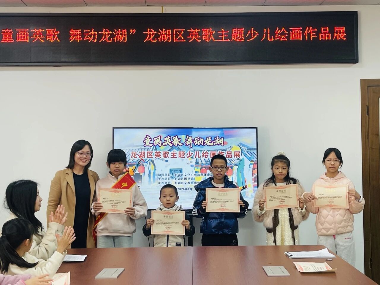 1月10日,“童画英歌 舞动龙湖”龙湖区英歌主题少儿绘画作品在龙湖区图书馆举行了开幕仪式,近50名市民读者参加仪式并参观了展览。