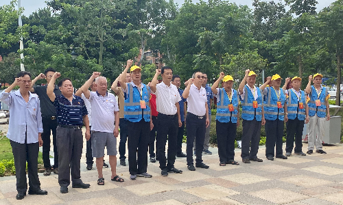 6月24日下午,龙祥街道在如龙革命树广场举行“光荣在党50年”纪念章颁发仪式。区委常委、党政办主任张义良,街道党工委书记郑元锰、有关领导,相关居委部分“两委”干部以及老党员代表参加活动。