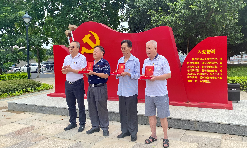 活动中,在场同志在“革命树”下的宣誓台共同重温入党誓词,铿锵有力的宣誓声响彻广场。张义良常委、郑元锰书记及街道党工委黄海鑫副书记为9名老党员代表颁发纪念章,并送上慰问金。