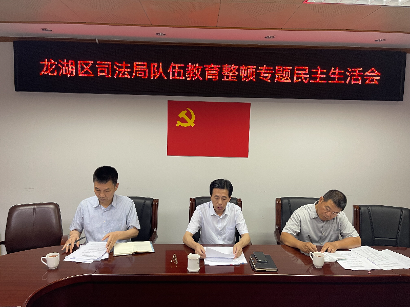 根据我局队伍教育整顿工作安排,5月17日下午,龙湖区司法局党组召开队伍教育整顿专题民主生活会。区司法局党组书记、局长陈东晓主持会议,局党组班子成员参加会议,区委政法委四级调研员何凯、区纪委监委派驻组三级主任科员蔡伟祥应邀参会。