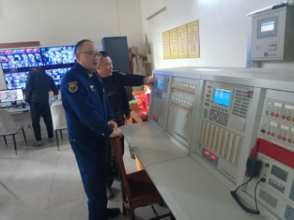 图3.督查组对小区物业消防控制系统等设施设备进行检查